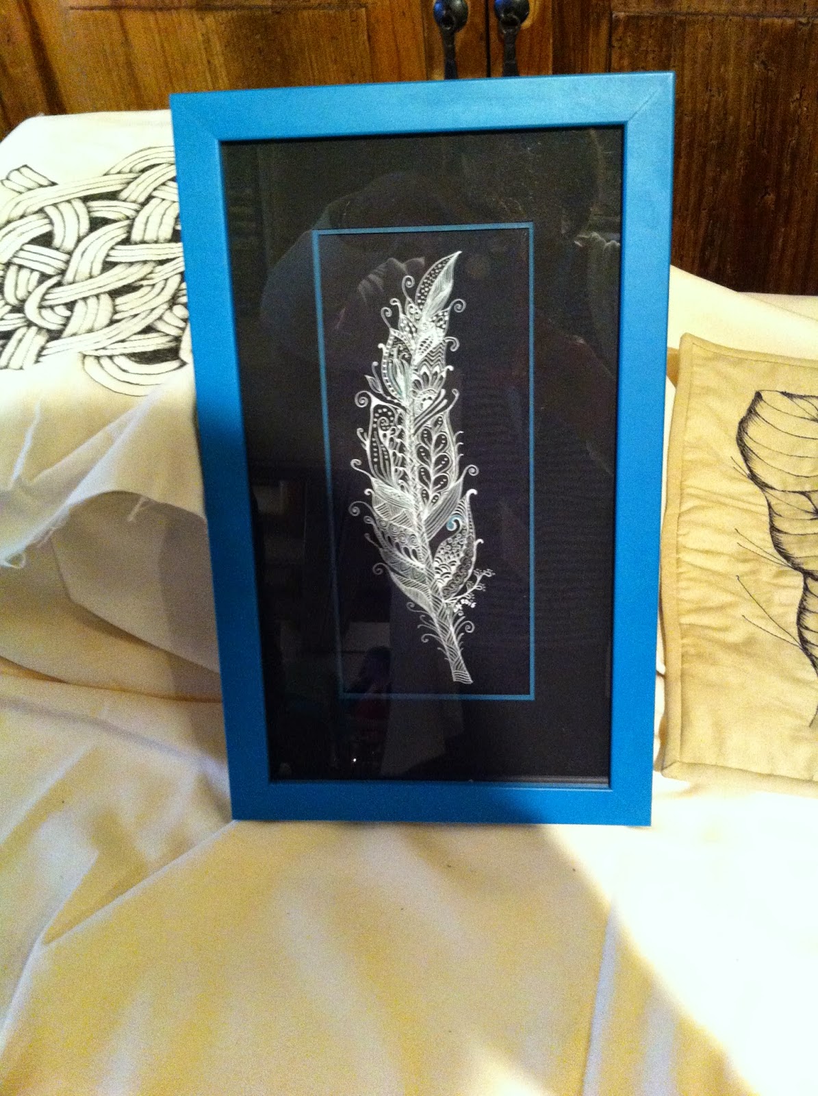 Just playing with a new technique I learned from CZT, Kate Lamontagne. Colored pencils with gel pens added on top. She taught us how to do some beautiful dream catchers using this method, which I will be posting soon! I promise!